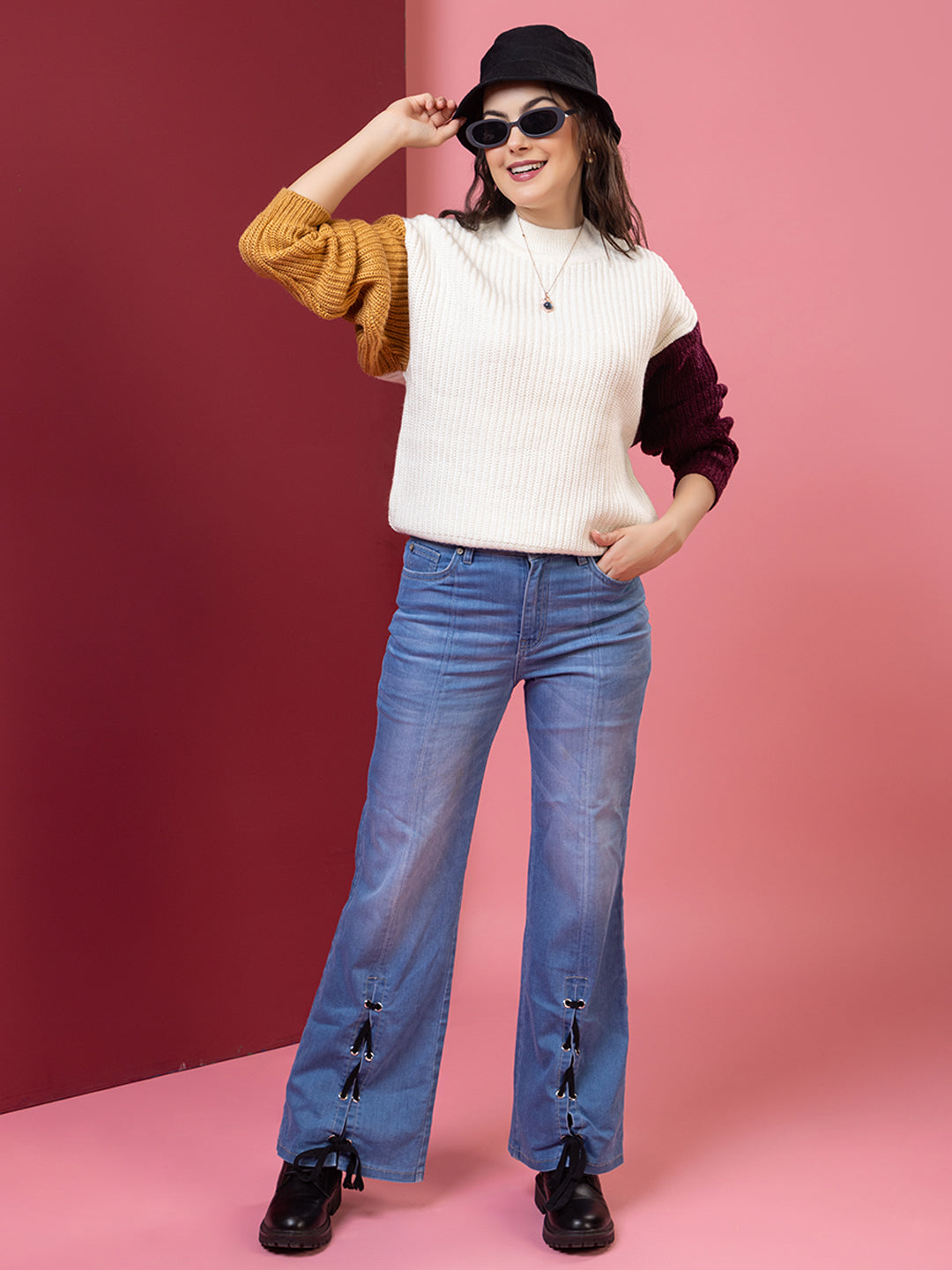 Womens Round Neck Pure Wool Winter Wear Pullover Sweater